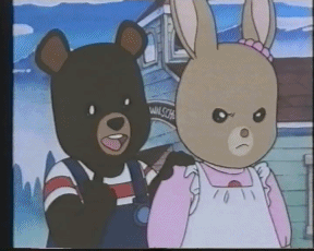 Ehkä kaipasin eskapismia, mitä en Seikkailumetsästä löytänyt, vaan päinvastoin, sarja oli minulle luotaan työntävä, mistä puheenollen, seuraava animaatio-gif sopii kirjaimellisesti...